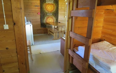 Hirsimökissä on kaksi pientä makuuhuonetta (toisessa makuuhuoneessa 160 cm parisänky ja ja toisessa kerrossänky) ja tupakeittiö. Tupakeittiössä pirtinpöytä ja -tuolit, sohva tai sänky, minikeittiö jossa astiasto, keittomahdollisuus sekä jääkaappi. Mökkiin tulee juokseva vesi.